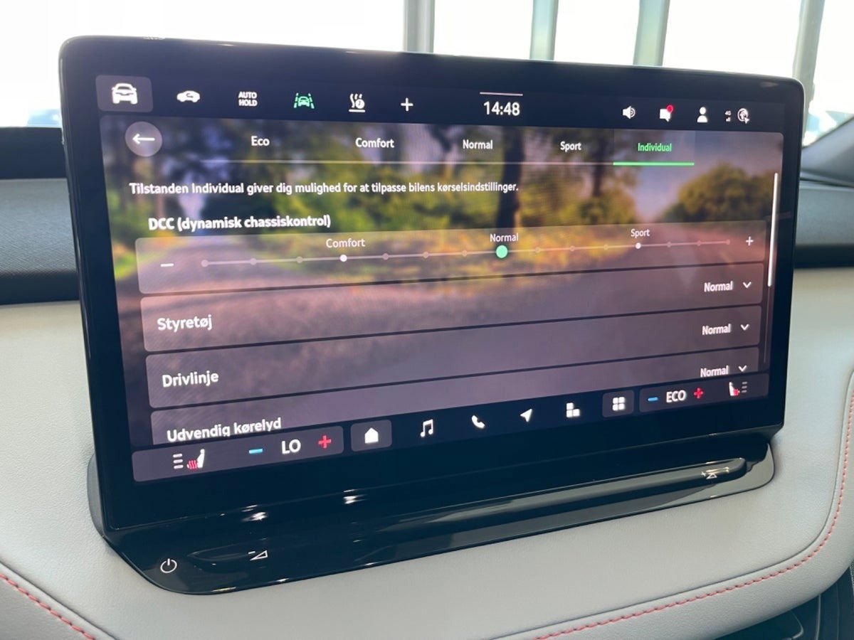 🛋️ Komfort & interiør 💺 Elektrisk justerbare forsæder med memory ♨️ Massagefunktion og elektrisk lændestøtte 🔥Sædevarme for + bag ❄️ 3-zonet Climatronic klimaanlæg 🌬️ Varme i rat og forrude 🌈 Ambientebelysning 🌑 Mørktonede ruder bag (Sunset) 🚪 El-bagklap med virtuel pedal 📦 Variabel bagagerumsbund + bagagenet