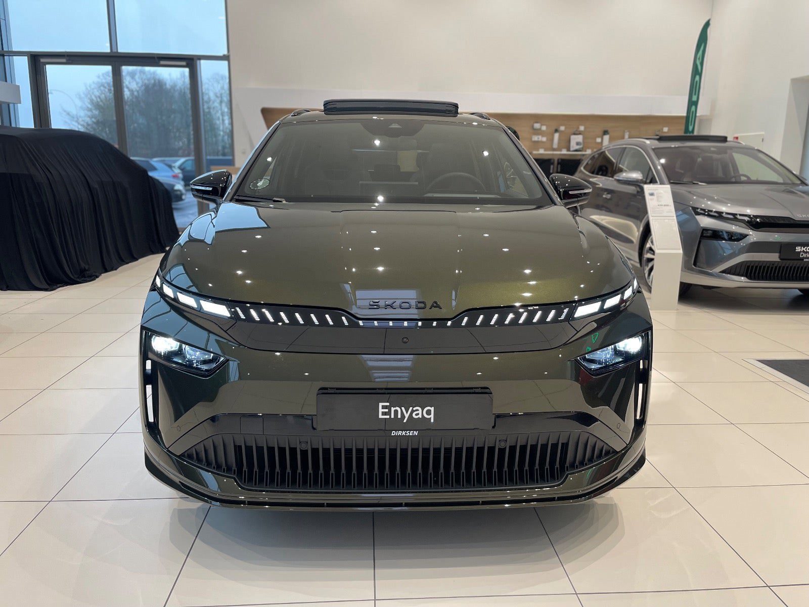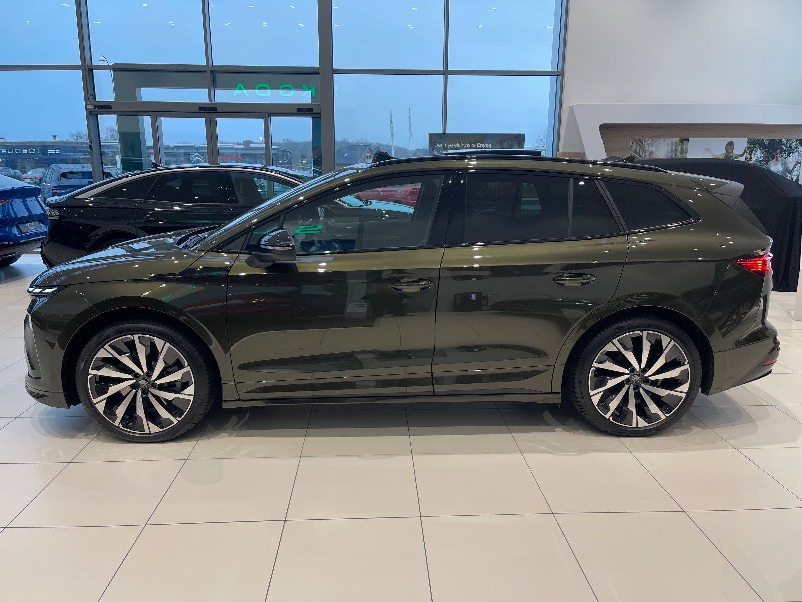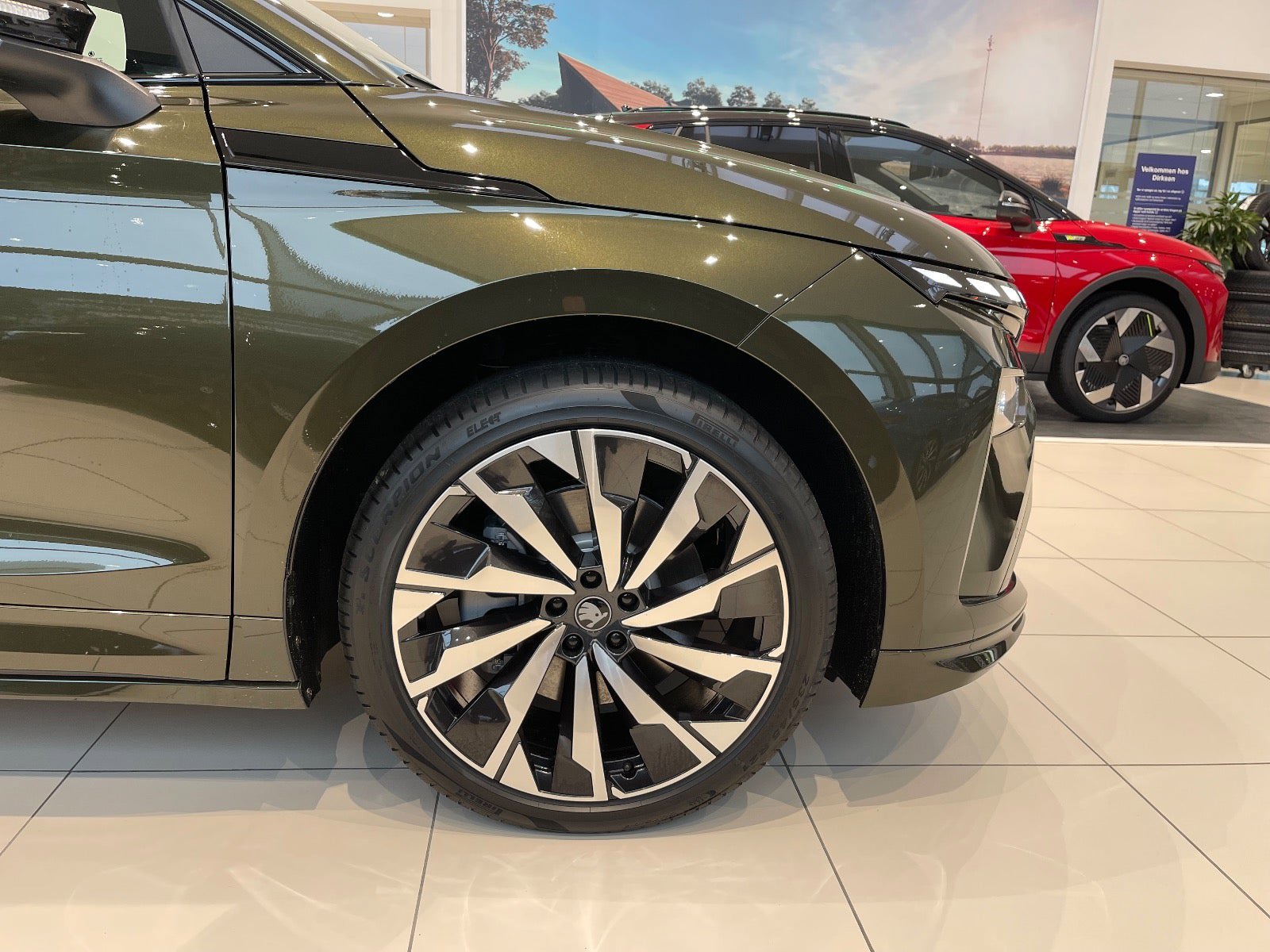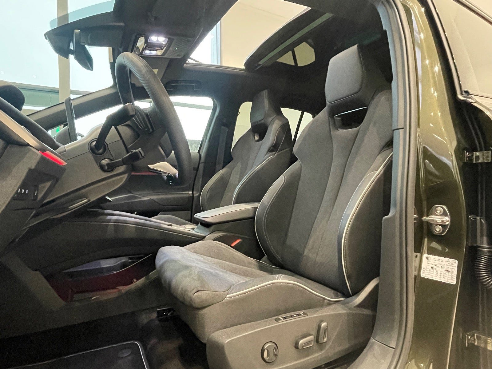 🏁 Sportline – det sporty look 🖤 Sportline eksteriør & interiør 🛞 21" Supernova sorte alufælge 🎨 Olibo Green eksklusiv metallak 🌑 SUNSET – mørktonede ruder ✨ Sorte stylingdetaljer & sportskofangere