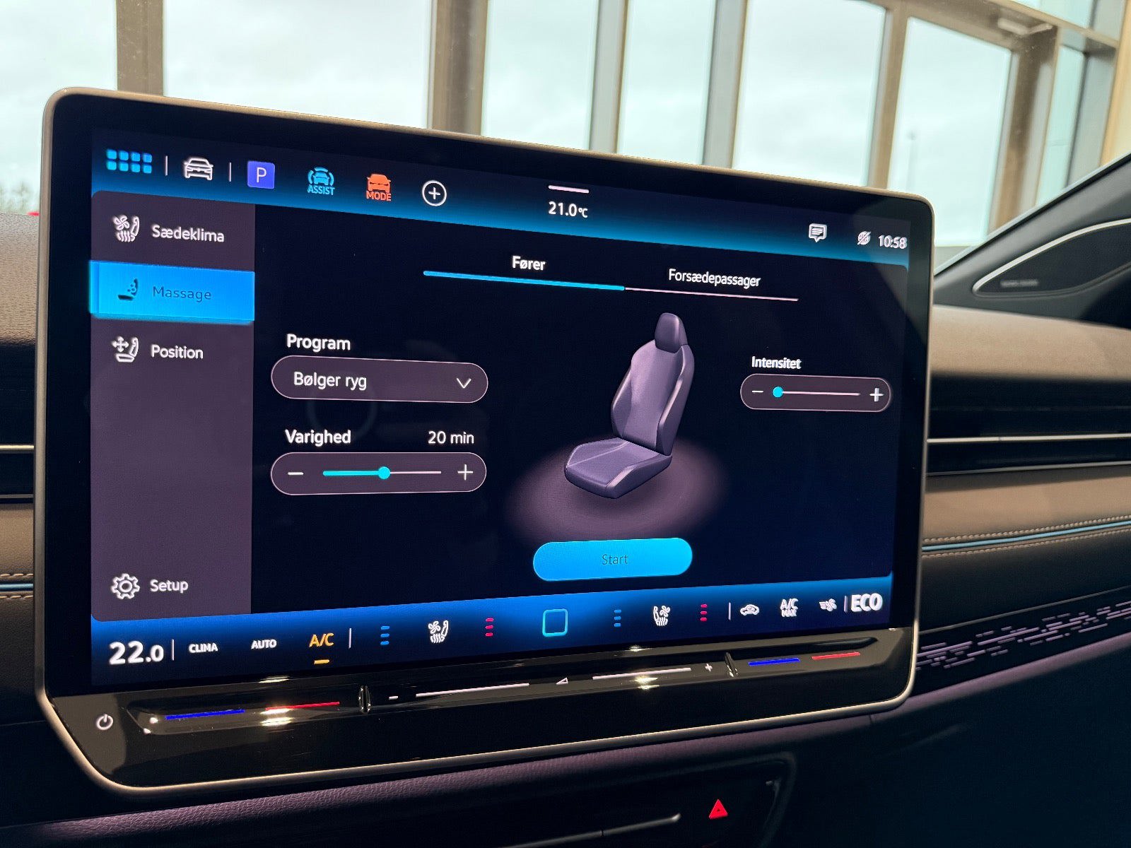 🛋️ Interiør & komfort ergoActive Premium sæder med: El-justering, memory Massage- og klimafunktion Sædevarme for og bag 3-zoners Climatronic klimaanlæg Head-Up Display med Augmented Reality Ambientebelysning i 30 farver Komfortkabine med støjdæmpende ruder Multifunktionsrat med varme
