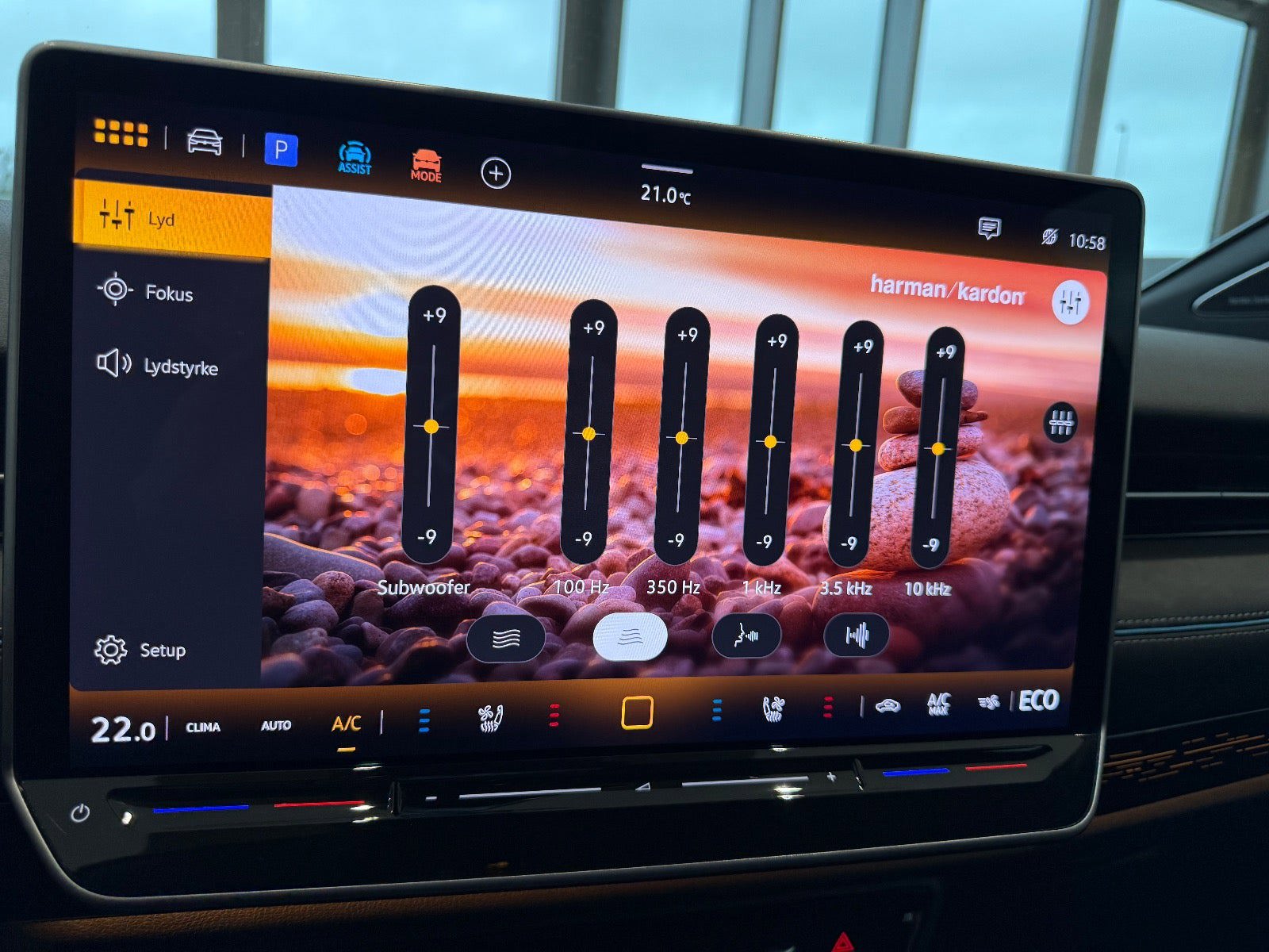 📱 Infotainment & lyd 15" touchskærm Navigation Discover Pro Harman Kardon lydsystem (700 W, subwoofer) Trådløs Apple CarPlay & Android Auto Trådløs mobilopladning DAB+ radio 4 x USB-C